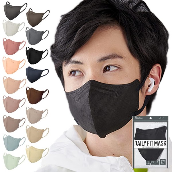 [アイリスオーヤマ] マスク 不織布 立体マスク 3Dマスク 5枚入 ふつうワイド 立体 個包装 小顔 デイリーフィット DAILY FIT 血色マスク チークマスク カラーマスク くちばし おしゃれ 耳が痛くならない RK-F5MBK ブラック 黒