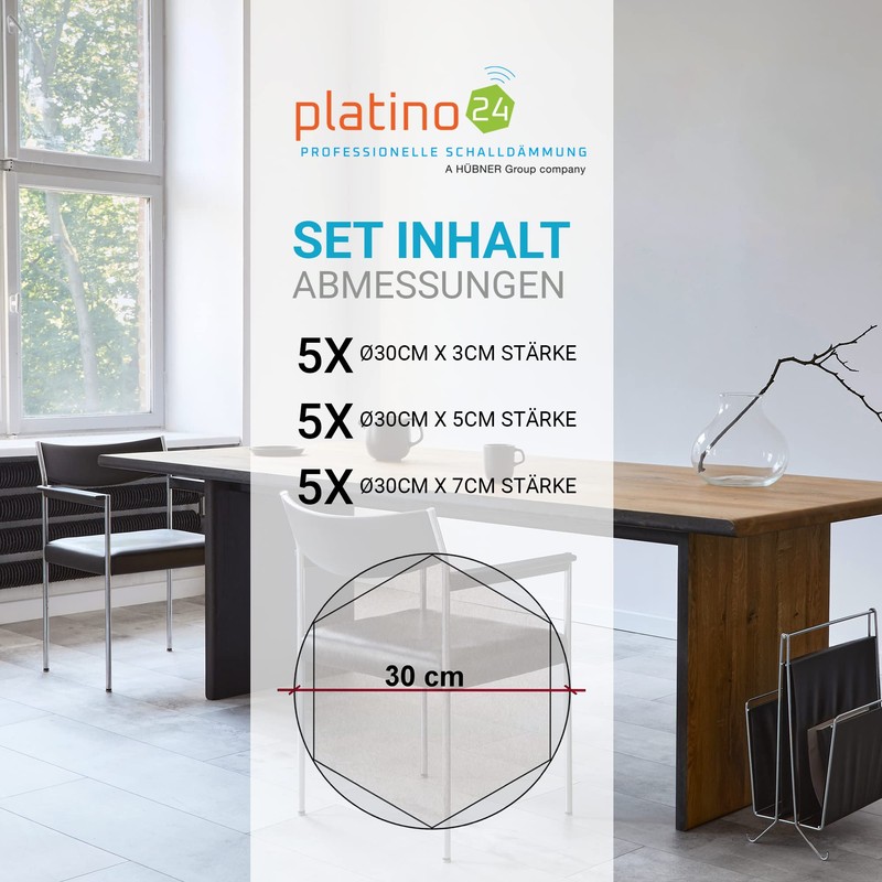 - Box contents: 5 absorber elements each diameter 300 x 30 mm + 5 absorber elements each diameter 300 x 50 mm + 5 absorber elements each diameter 300 x 70 mm