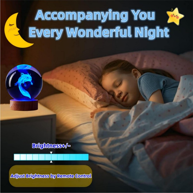 3D Axolotl Crystal Ball Night Light, Upgraded 3.15 Inch Axolotl Crystal Lamp with LED Wooden Base, 16 Colors Change with Remote Control, Birthday Christmas Gifts for Friends (Axolotl - A)