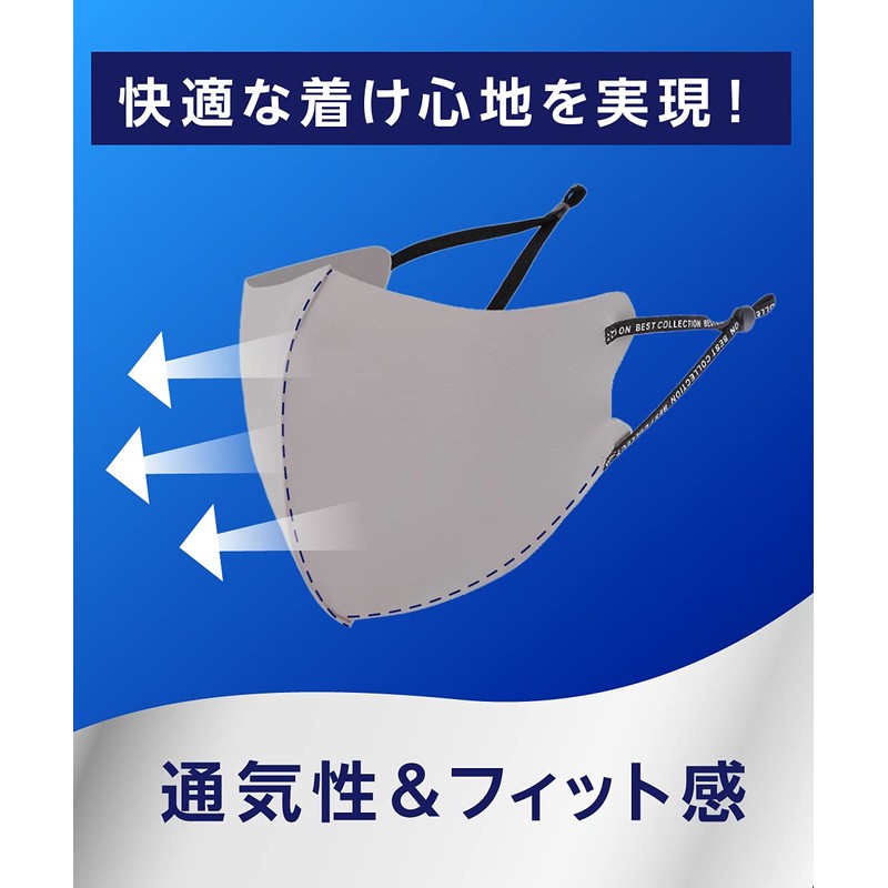 3D FIT Washable Mask, Set of 3, Gray, Easy to Breathe, Set of 6, Adjustable Ear Straps, 3D Construction, Washable, Unisex, Sweat Absorbent, Quick Drying, High Performance, Regular