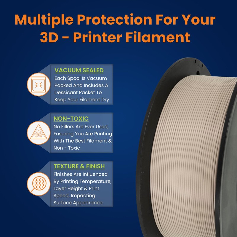 - VACUUM SEALED: Each spool is vacuum packed and includes a dessicant packet to help keep your filament dry. Sometimes these vacuum seals may puncture in transit, but your filament is still perfectly good to use.