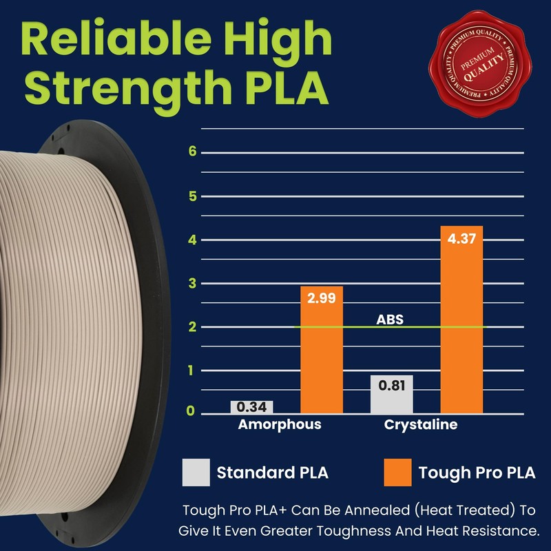- TOUGH AND STRONG: Tough Pro PLA+ is designed for your most demanding projects but prints smoothly and without fuss making it perfect for quick jobs. It’s an engineering-grade, tough PLA with excellent temperature resistance and strength that rivals ABS. It is 8.8x stronger than regular PLA and is annealable for extra strength.