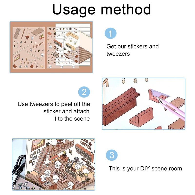 - 【Easy to Use】DIY 3D house stickers only requires you to gently pick up the stickers with tweezers and then use your imagination to create your own DIY scene, the cute stickers allow you to rearrange and customize the scene according to your own ideas and style