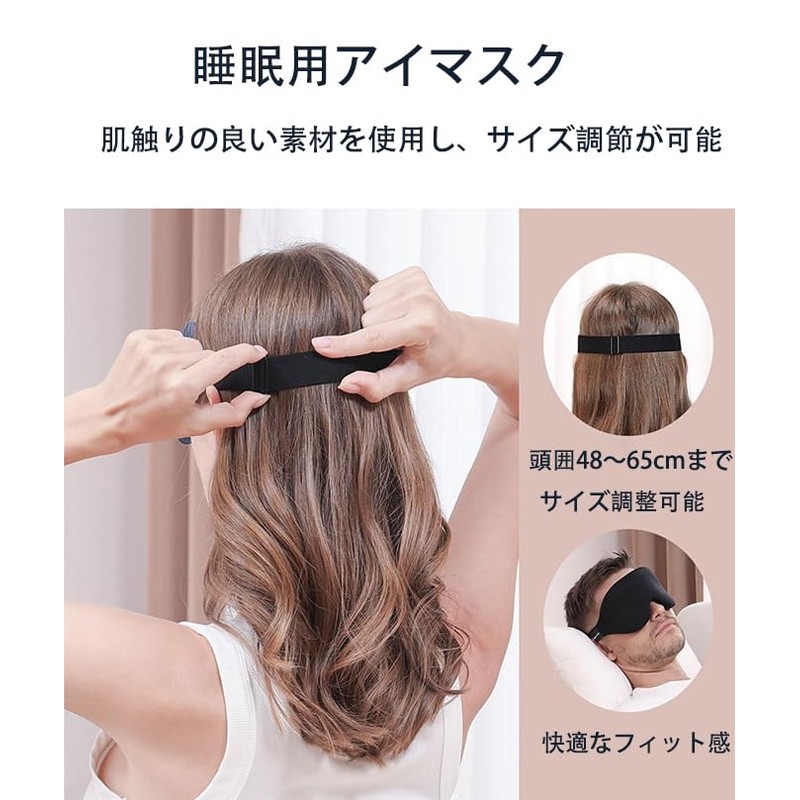 - 【サイズ調整可能】高伸縮性ゴムバンドを採用!頭囲48~65cmまで調整できるので、顔や頭の大きさに合わせて自由に調節することができます。男性も女性もストレスなく使える目隠しです。睡眠中に簡単に滑ったり落ちたりすることはありません。 飛行機内、電車新幹線、仮眠、睡眠、昼寝、出張、旅行など、安眠グッズとして様々なシーンで快適にご利用いただけます。