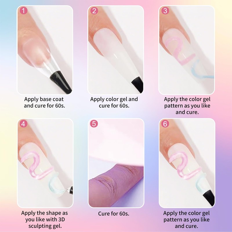 - EASY TO USE -3D gel nail art sculpture is designed with a needle tube, and does not require any tools. Just squeeze it directly on the nail, saving time and effort. The carving molding gel is smooth and will not collapse. The color is transparent and does not turn yellow, it can be wiped with magic mirror powder. Even beginners can create the desired shape effortlessly and easily control and adjust before curing.