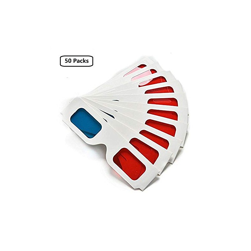 3D Paper Glasses, Red and Cyan Anaglyph, White Cardboard Frame, 50 Pairs