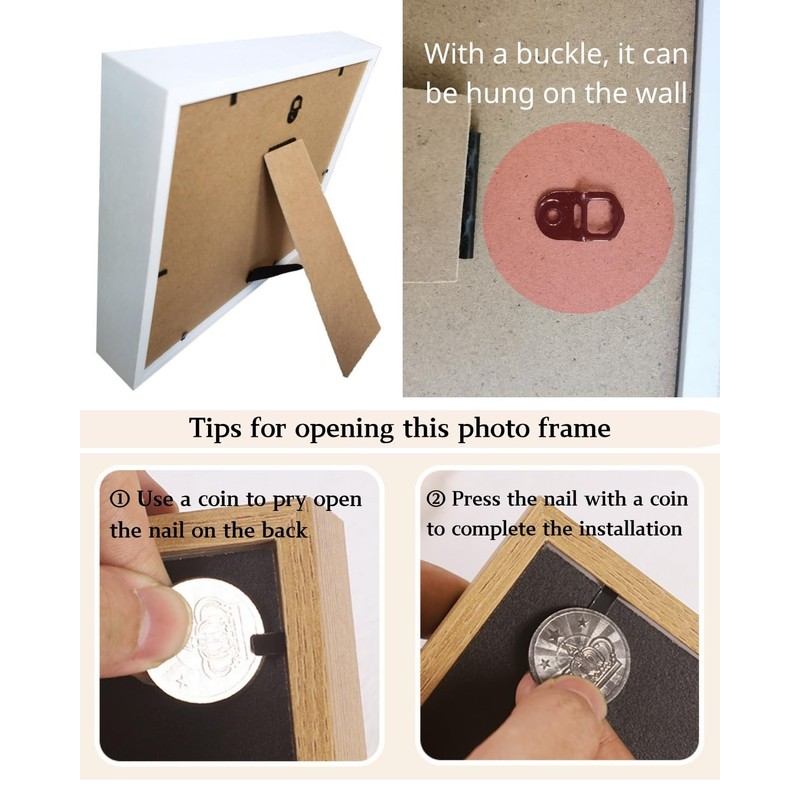 - Easy to use: with the metallic clasp on the back of the 3D picture frame, the frame can be opened effortlessly. You can insert personal photos, shells, flowers or other souvenirs to create your own individual artwork.