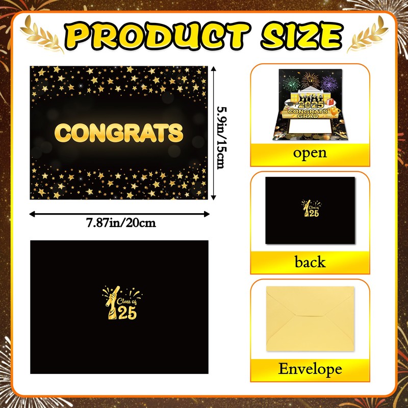 - 【Premium Greeting Card with Envelope】 Made of premium thick cardboard, black and gold colors, textured to the touch. Congratulate someone on their graduation with this gorgeous graduation pop up card.