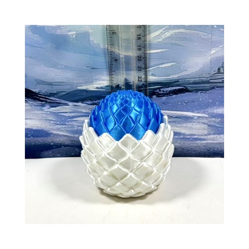 3D Printed Baby Dragon with Dragon Egg, 6" Articulated White and Blue Mushroom Baby Dragon, Home Decor Executive Desk Toys,Fidget Toys for Autism/ADHD BD006WB-WBE