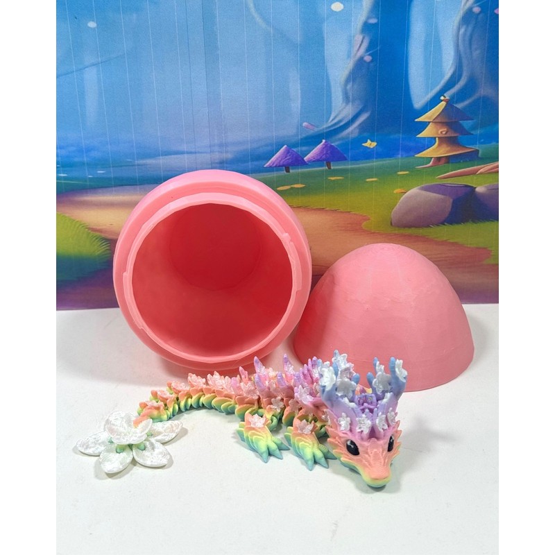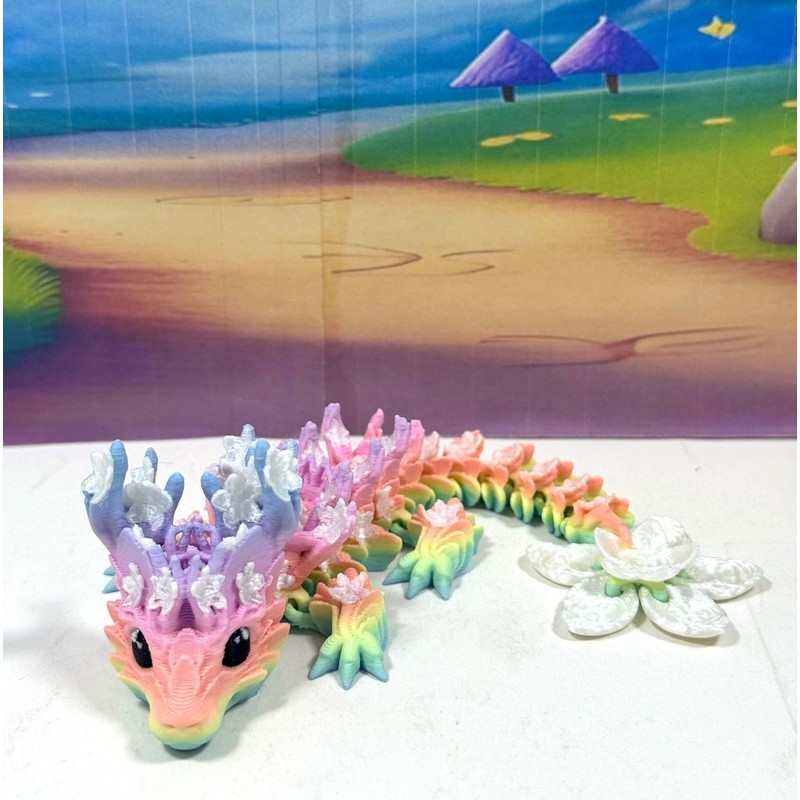 3D Printed Baby Dragon with Dragon Egg, 6" Rainbow Articulated Cherry Blossom Baby Dragon, Fidget Toy for Autism ADHD, Executive DEST Toy, BD004-MAC-PE