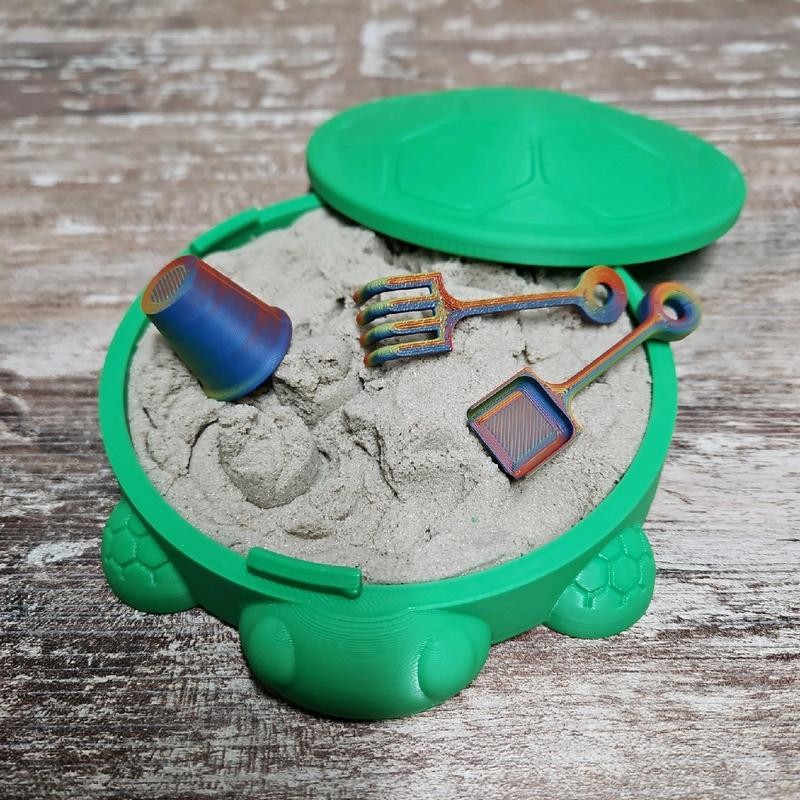 The 3D printed turtle sandbox is a fun and unique way to build sand castles at home. The sandbox is designed in the shape of a turtle, which adds an element of creativity and imagination to the playtime experience. The sandbox comes with play sand and tools, making it a complete set for children to enjoy.