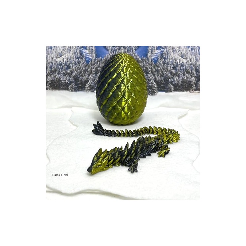 3D Printed Dragon and Dragon Egg Articulated Adult Gemstone Dragon Silk Finish 4 Dual Colors Option, Fidget Toy Executive Desk Toy D008-S1 (Black Gold)