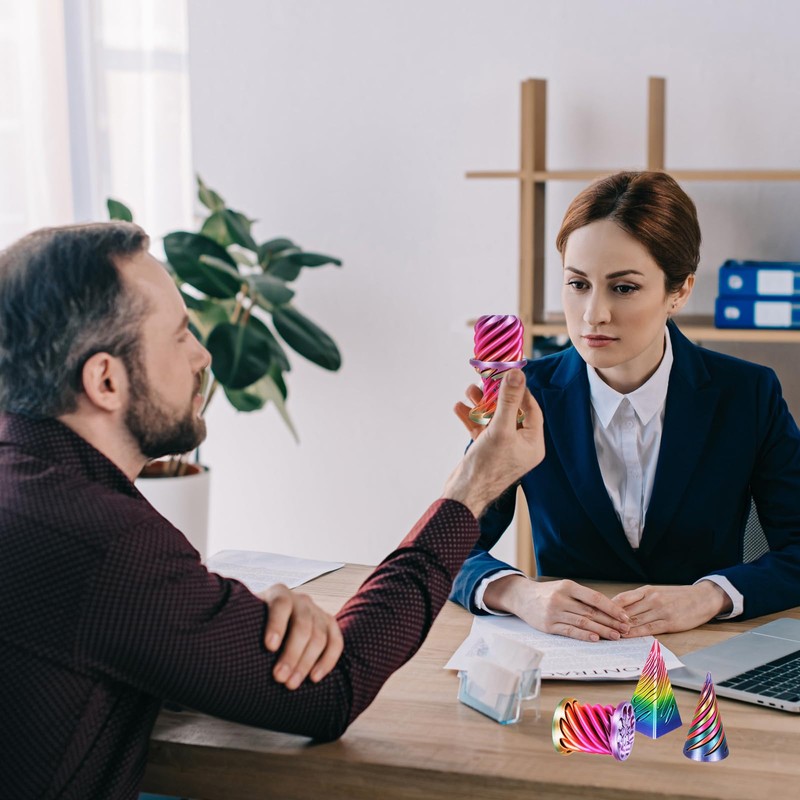 - desk fidgets toys: The impossible cone fidget toy not only adds interest to a desk or office space as decoration, but the impossible pyramid spiral cone fidget desktop toys is also a multi-functional anxiety fidget stress relief toy, perfect for relaxing after a long period of working or studying. Watching these impossible pyramid passthrough sculpture toys magically pass through each other will instantly make you feel happy.