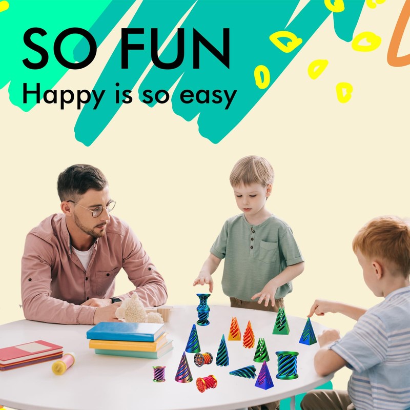 - Unique craftsmanship and materials: The 3D printed fidget toys set that feels impossible to travel through is made of PLA material combined with 3D printing technology, ensuring the durability of the figit toys while providing the psychedelic laser color of the 8d printed fidget toys, which is impossible A different color appears every time the cone travels through the spiral cone fidget toy.