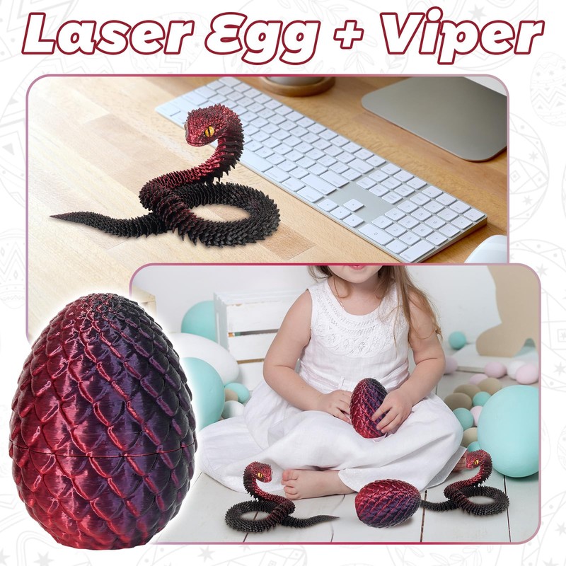 - Durable Materials: Constructed from quality PLA, this 3D printed snake fidget toys is both lightweight and durable, ensuring long-lasting enjoyment. Mystery crystal snake in egg innovative hinged design allows for versatile posing, making it an engaging 3d printed dragon fidget toys