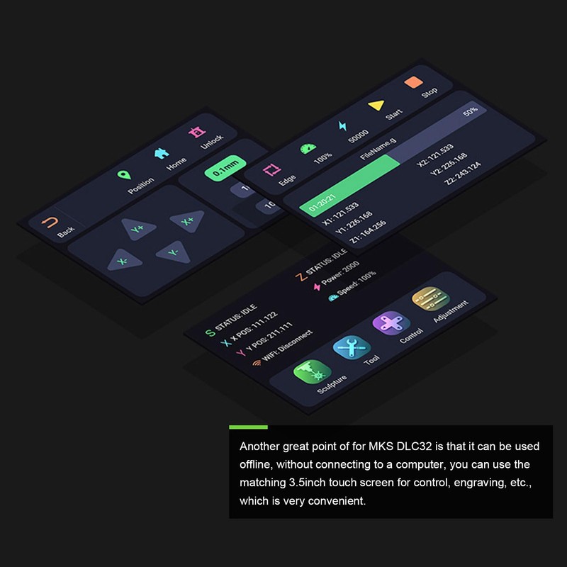 - Super Wide Compatibility This motherboard allows for fast engraving and web control, mobile app control, etc. The MKS DLC32 has mounting holes and a board size compatible with the MKS DLC and can also be used with PC software for GRBLaser and LightBurn.