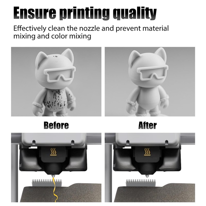• Premium Silicone Material: Made from high-grade silicone, this cleaning tool offers superior durability and heat resistance for long-term use. The smooth yet sturdy silicone surface effectively wipes nozzle residues without scratching, while maintaining its shape through repeated cleaning cycles. Non-toxic and chemically stable, it ensures safe and reliable performance throughout your 3D printing journey.