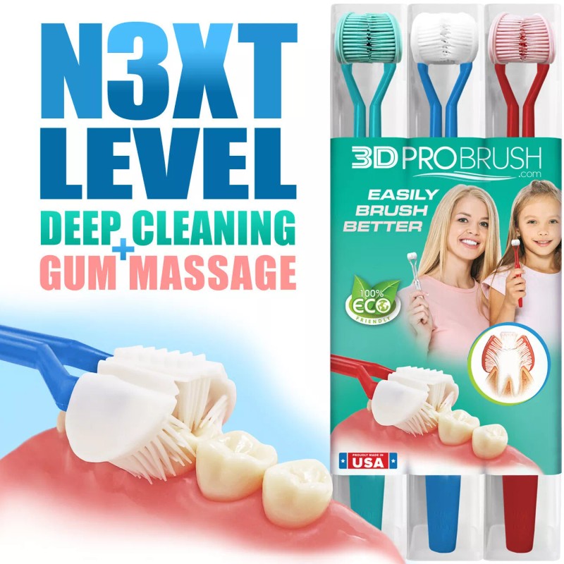 3D PRO BRUSH | 3PK * 3-Sided Toothbrush | Deep Clean + Gum Massage ECO-FRIENDLY