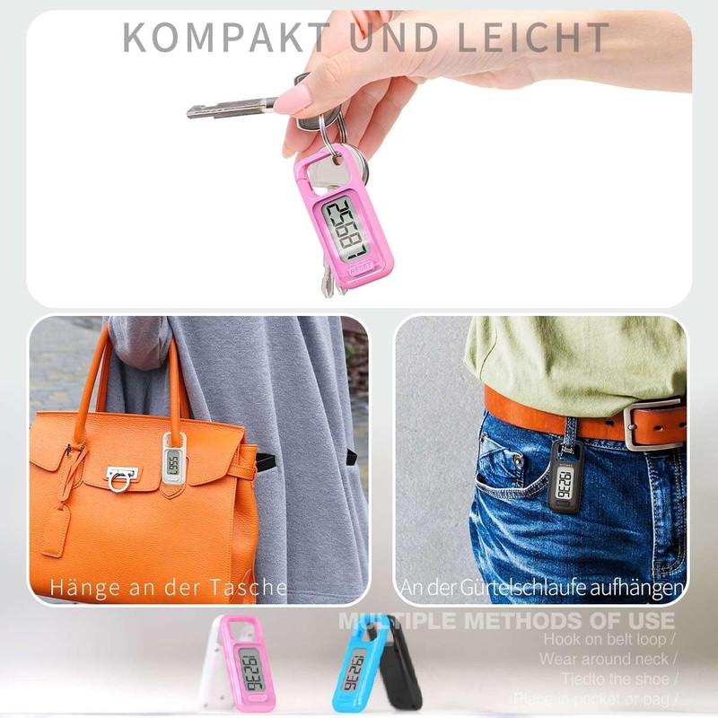 - 【Portable & Practical】: Innovative carabiner design that makes it easy to hang the pedometer on various objects - such as belts, bags, key stands, drawstring waistbands. Includes a collar for comfortable wearing around your neck!