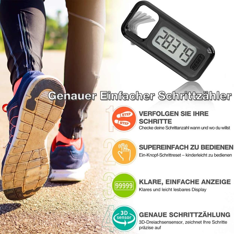 - Large, clear display: with clear display and easy to read numbers - all values can be seen at a glance. Displays up to 99,999 steps!