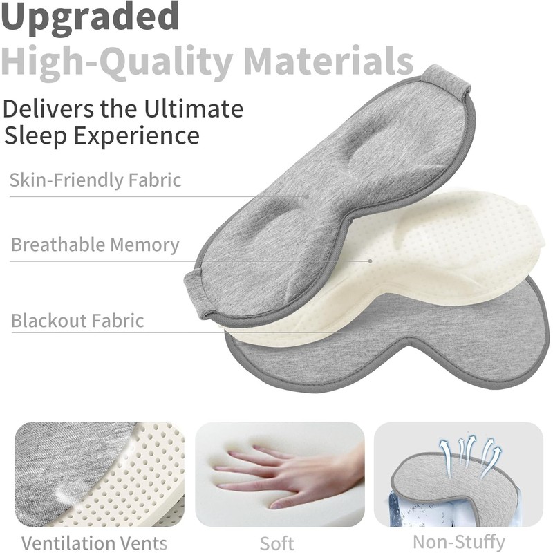 COMPLETE DARKNESS: 3D contoured design with upgraded ergonomic shape ensures total blackout for optimal sleep quality and relaxation