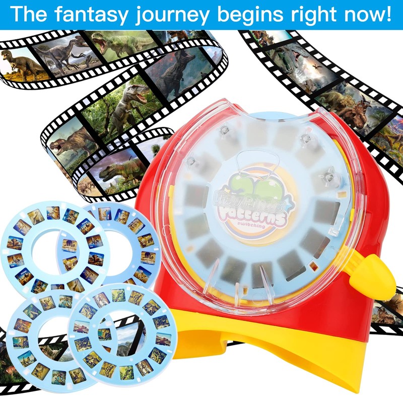 - Perfect Content: This link contains 1 viewfinder and 4 themed movies (2 dinosaur themes, 2 animal themes). Each movie has 14 frames, consisting of 7 different frames, played on a loop twice. The operation is simple, just move the joystick to switch the screen. The viewfinder size is about 5.39*5.11*1.77 inches, and the film size is 3.34 inches, which can be carried in a bag. Note that film is not available in all viewfinders.