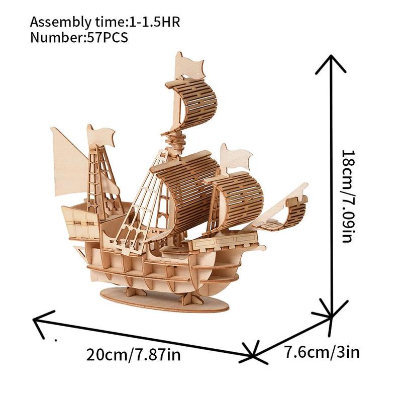 3D Wooden Puzzle, 57pcs/set Ocean Sailboat Model Toy, Handmade Creative Birthday and Holiday Gift Options