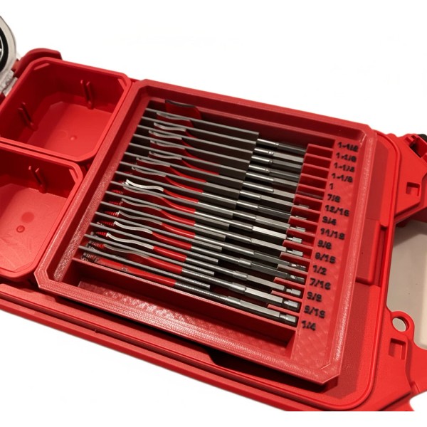 Keep your spade bits neatly organized and easy to access with this custom insert designed specifically for Milwaukee PACKOUT Low Profile Organizers (48-22-8431 and 48-22-8436).