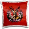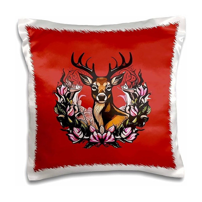 3dRose 16x16 inch Pillow Case - Arkansas Deer with Antlers and Apple Blossom Tattoo Art Vector Art - Arkansas State Mammal Flower
