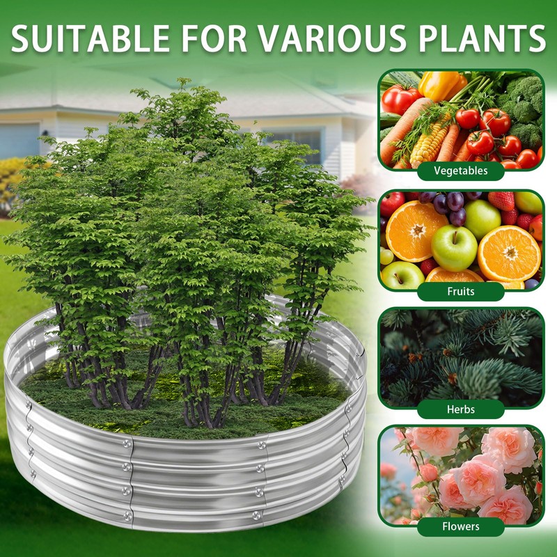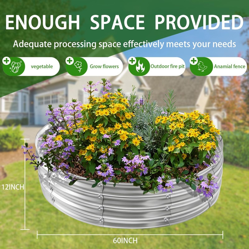 3FT Galvanized Fire Pit Ring, Foldable 36 Inch Silver Round Galvanized Fire Ring Outdoor Pits Raised Garden Bed for Backyard (Silver, 3x3x1FT)