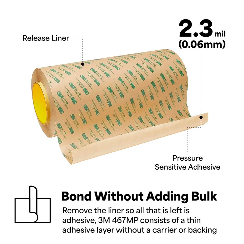 3M 467MP Clear Adhesive Transfer Tape, 3" Width x 5yd Length (1 roll)