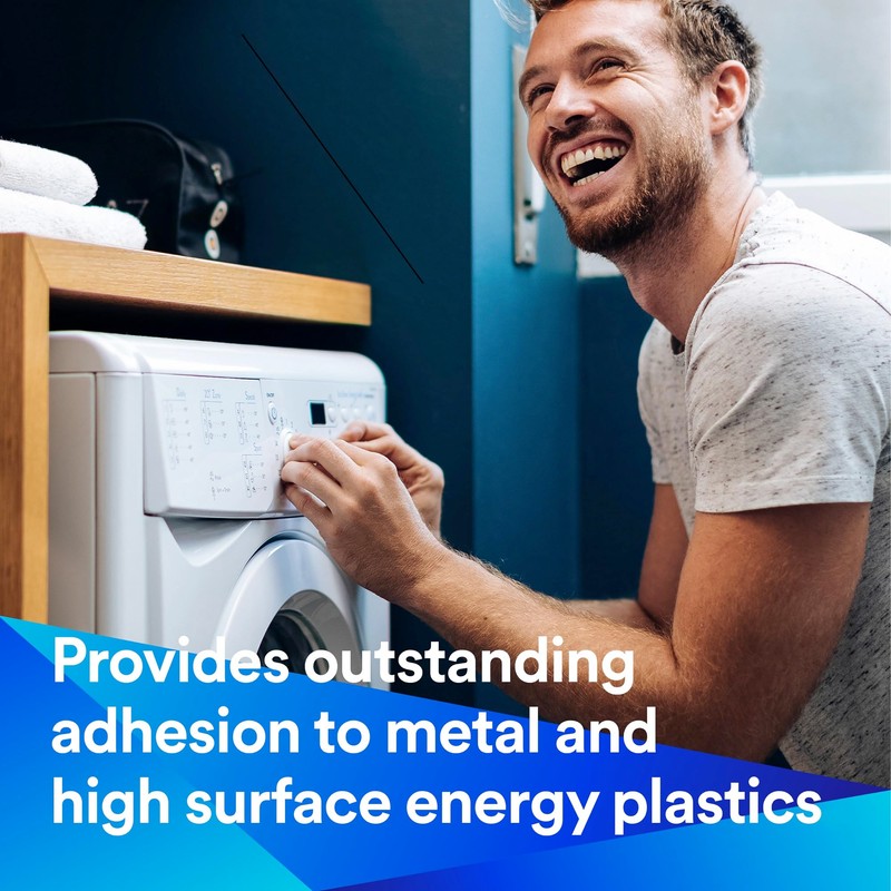 - Excellent resistance to harsh environments; this adhesive can withstand splashes of organic solvents, weak acids and bases and salt water, cleaning solutions, germicidals, disinfectants, oils, etc. In addition, it performs well after exposure to humidity and hot/cold cycles.