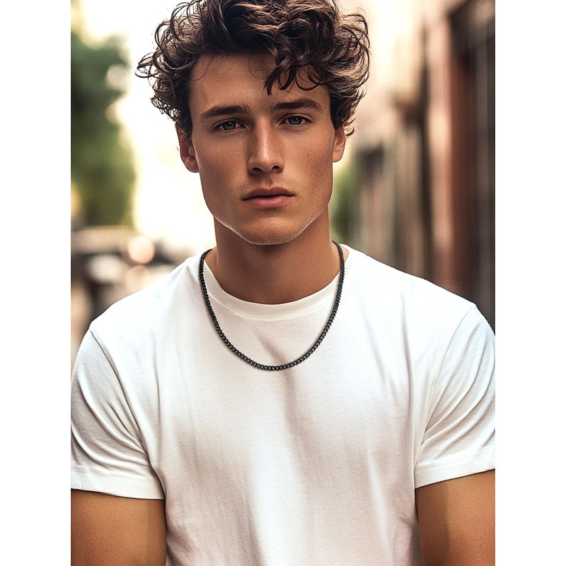 - THICK CHAIN -- This curb Miami Cuban chain necklace is a terrific selection. The open round links have a gorgeous shine that catches the light. Its classic width makes this men's necklace an eye-catching statement when being worn solo or for wearing with an array of other chains.