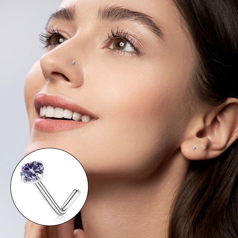 - Hypoallergenic :Our nose rings feature a simple and stylish design. The highly polished surface reduces friction on the skin and improves wearing comfort. L-shaped nose piece set with 5A+CZ sparkle. Compared to stainless steel, it is less prone to oxidation. Wearing it for a long time still shines.