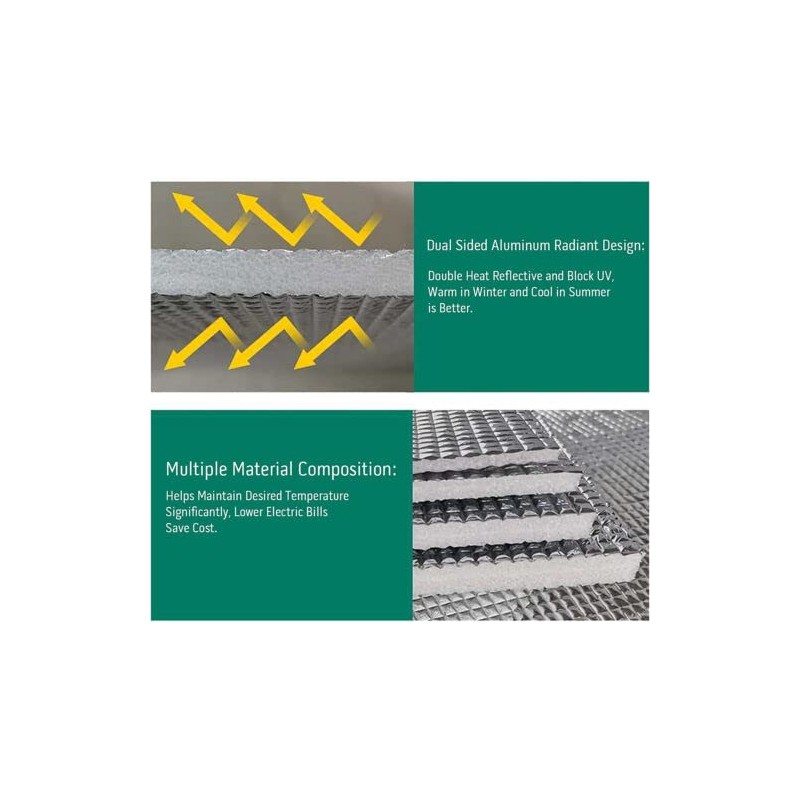 - EXTREMELY EFFECTIVE - R value up to 15.32 (with one layer), up to 20.42 (with two layers), reflect 97% of radiant energy, perfect radiant barrier!