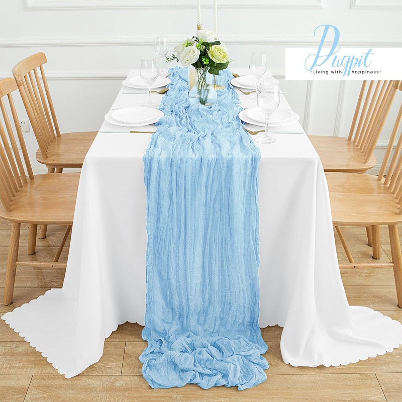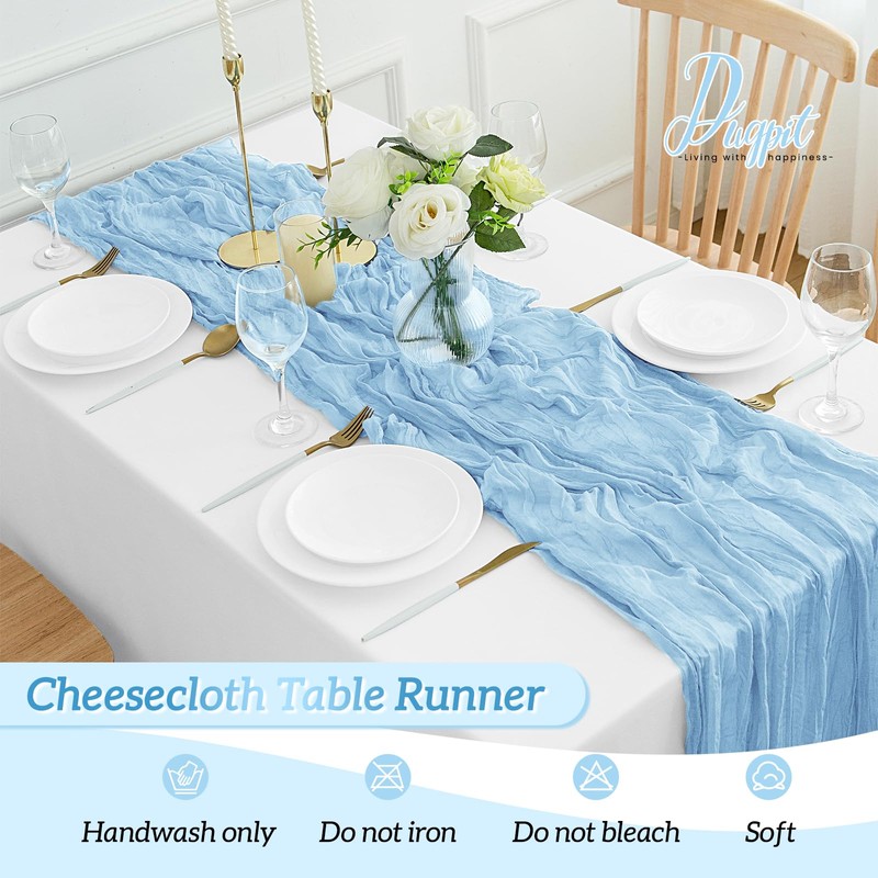 - Package Included:You will get 3 pack of baby blue spring easter table runner, perfect for wedding banquets and various parties, enough to meet your daily use and replacement needs. Each baby blue cheese cloth table runner measures approximately 35 x 120 inches/90 x 300 cm, long enough to be used individually on rectangular and round tables, or pieced together for long tables. No matter how it is used, this gauze table runner can be placed perfectly and elegantly on the table or hung on the floor, adding a romantic atmosphere to your occasion