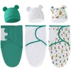 3Pack Baby Swaddle Sleep Sacks Swaddle Blanket Wrap Baby Swaddles Sack with Hat for 0-3 Months Newborn (Green Series)