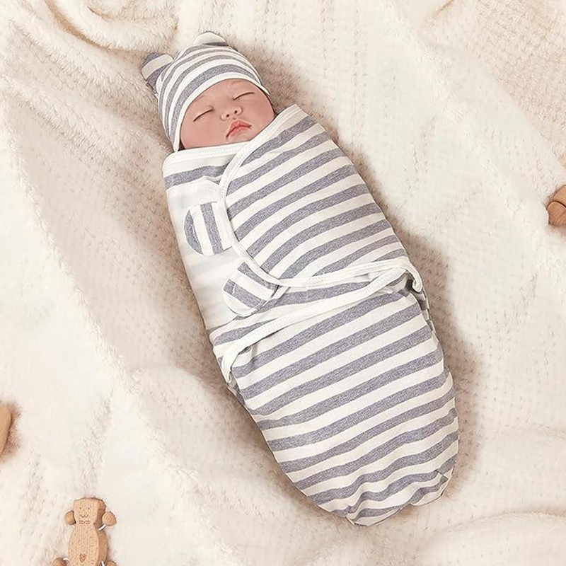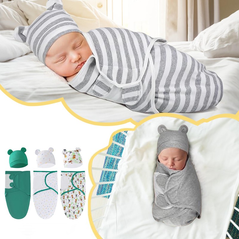 Package Include:3Pack swaddle wraps+3Pcs Hat