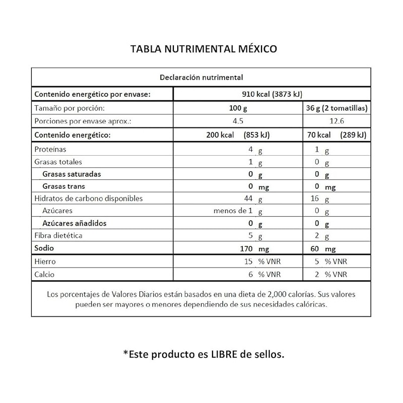 | Ingredientes | Tomate, maíz nixtamalizado, sal de mar, benzoato/ascorbato de sodio. |