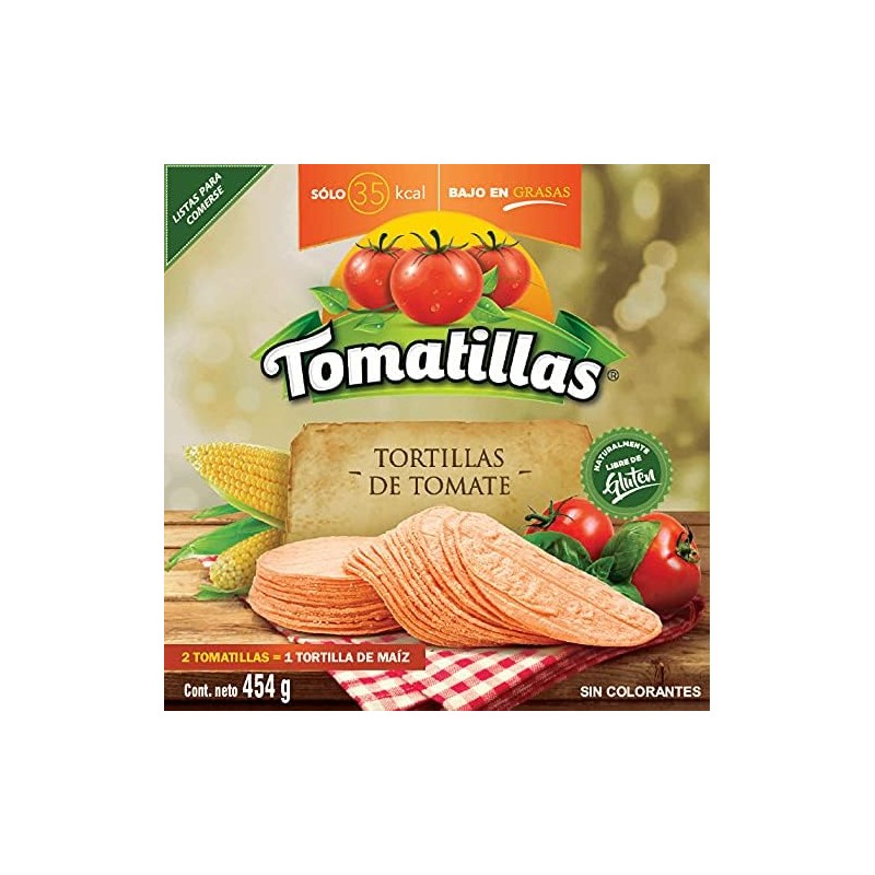 Las tomatillas son tortillas de tomate y maíz, bajas en calorías por lo que 2 tomatillas equivalen a 1 tortilla de maíz. Están hechas con tomate 100% fresco y natural, además de ser bajas en grasa y libres de gluten. ¡No se rompen al doblarlas y tienen un sabor único!