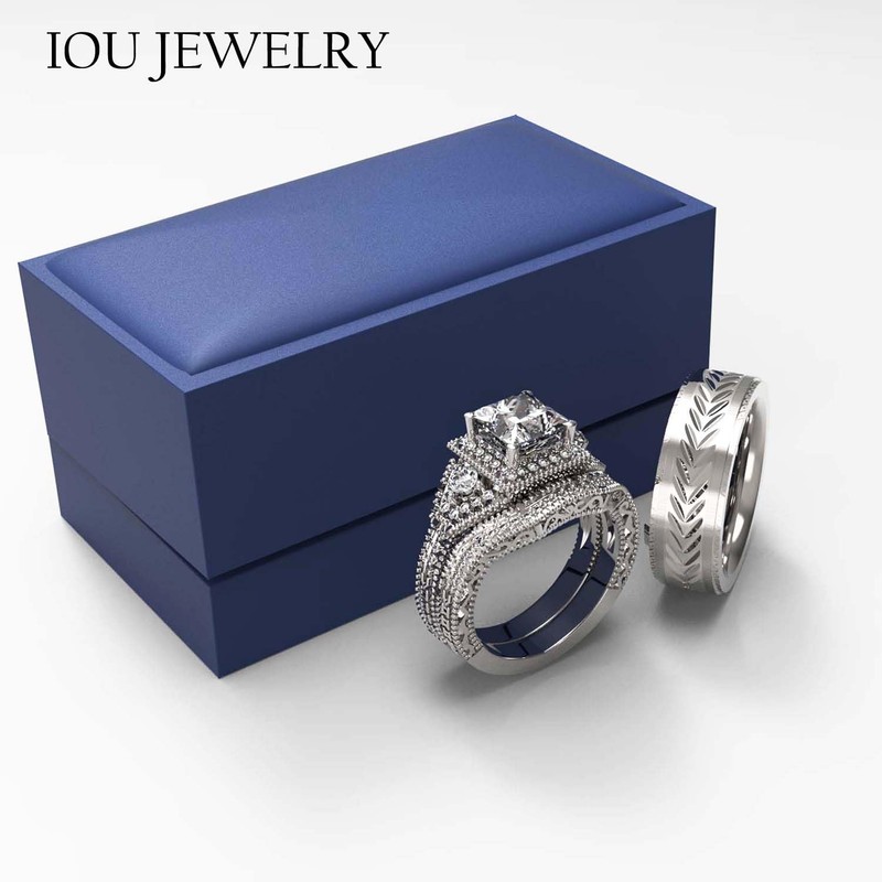 3pc Couples Wedding Ring Sets His And Hers Women Sterling Silve Moissanite and men Wedding Bands