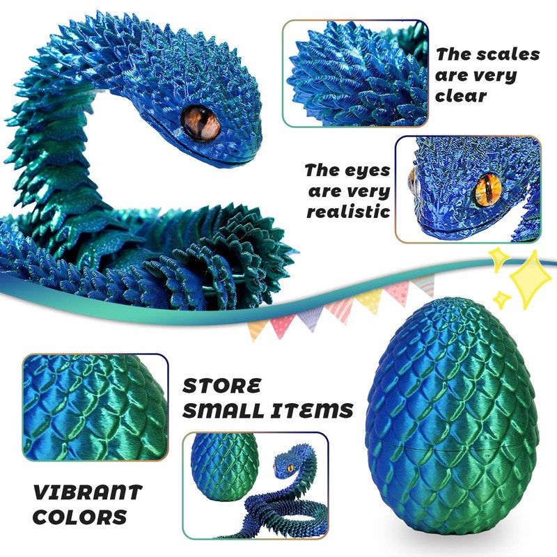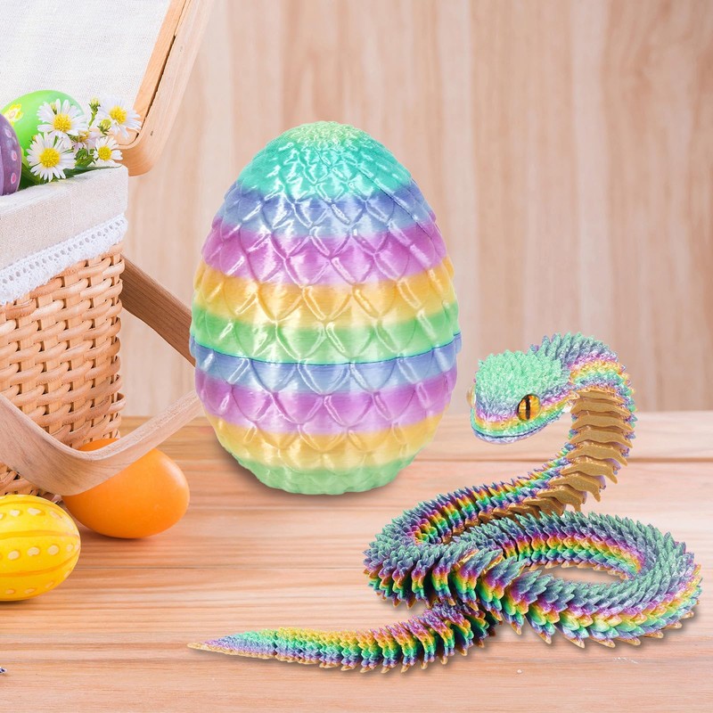 • Widely Used: 3D printed dragon in egg is enhances any bedroom, home, office, desk, table, transforming spaces with its unique 3D printed snake egg design. 3D printed articulated snakes can be used as Easter gifts for adults, loved ones, and friends, as well as decorations for Halloween, birthday parties, Easter, and various festivals