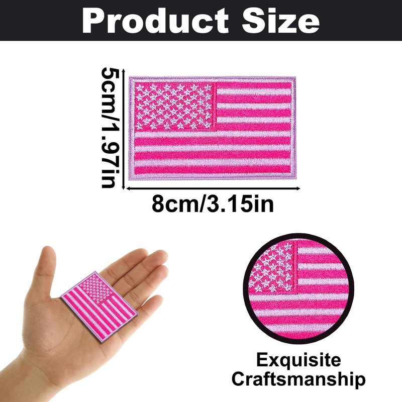 - 【Great Value】You will get 3 pcs Embroidered American Flag Patches in pink, enough for you to add a pop of color and texture for clothes.