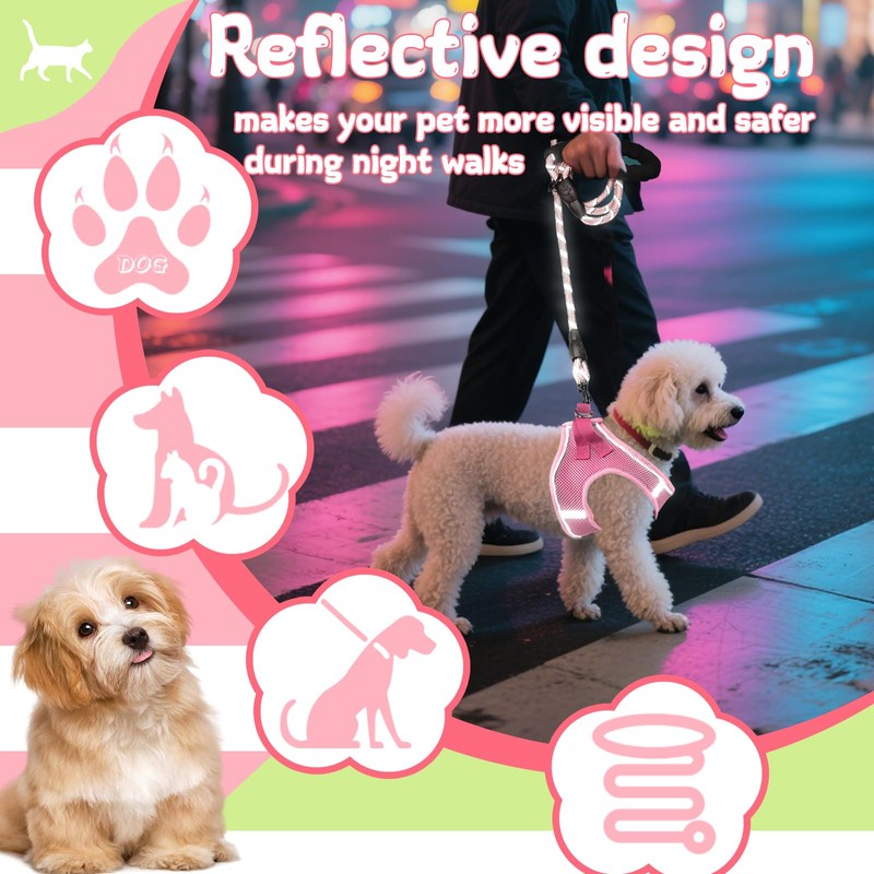 - 🌟 【Safety First】Featuring reflective stitching, our harness enhances visibility during low-light conditions, keeping your pet safe during evening or early morning walks. The sturdy d-ring attachment point provides secure leash connection for worry-free outings.