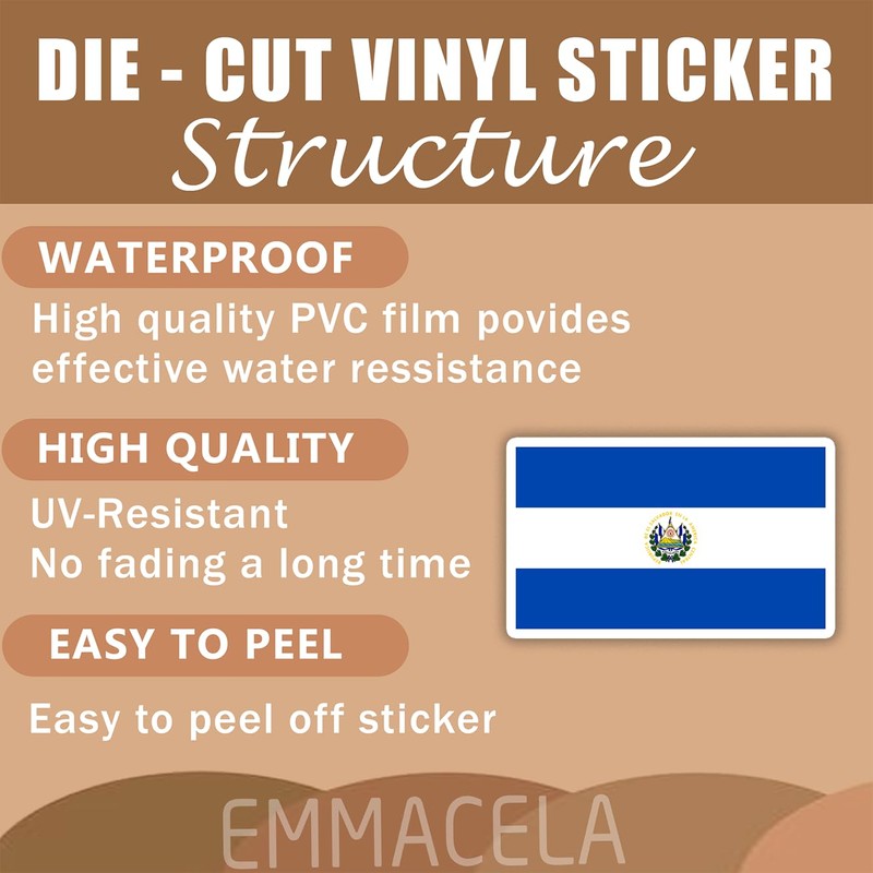(3PCS) El Salvador Flag stickers, Countries Flag Stickers - Waterproof Vinyl Decals For Laptops, Tumblers, Water Bottles, Books, Scrapbooks, Size 3 x 1.8 Inch
