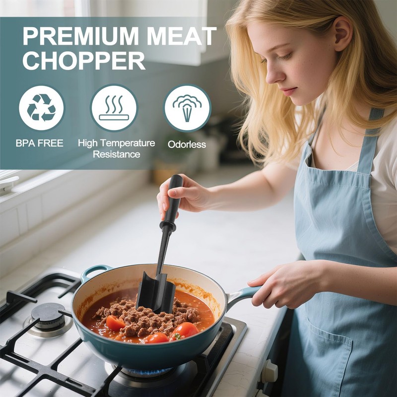 - Value package: You can take three Meat Mashers with you, which can easily and quickly break down minced beef, chicken, and burgers. In addition, this tool is used as a spatula during cooking to mix your favorite spices. Infinite possibilities!