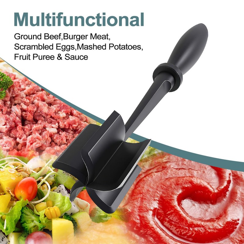 - Professional Chef Design: Equipped with 5 wide angled needle wheel blades. A hamburger smasher can help you efficiently mix, stir, mash, and crush, making your kitchen tasks easier and faster than other options with only three to four blades. The meat grinder can perfectly crush meat without damaging the non stick pan surface.
