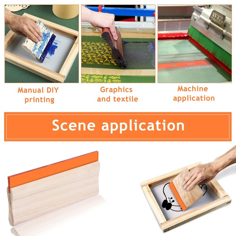 - 【Comfortable and Flexible】The wooden handle has an ergonomic shape for comfort and maximum control and the quality polyurethane blade is very smooth when running the ink across the screen, and the combination of the two can transfer ink to the substrate cleanly and conveniently.