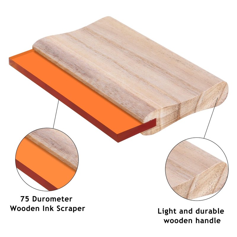 - 【Sturdy and durable】Wooden Ink Scraper is composed of a light wooden handle and a high-quality rubber strip, excellent abrasion and solvent resistance.