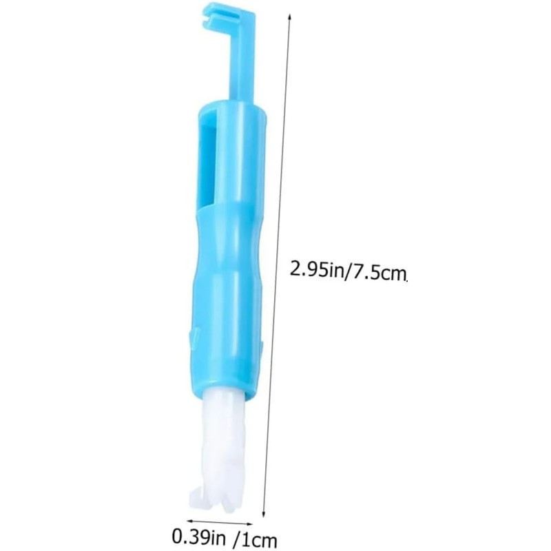 Effortlessly thread needles with these handy sewing machine needle threaders. This set of 3 blue plastic threaders makes it easy to insert thread through the eye of a needle, saving you time and frustration. Simply insert the threader's wire through the needle's eye, catch the thread, and pull it back through. These threaders are essential tools for any sewing enthusiast, making needle threading a breeze. Keep one in your sewing kit, one by your machine, and one as a spare. With their compact size and bright color, you'll never struggle to find a needle threader again.